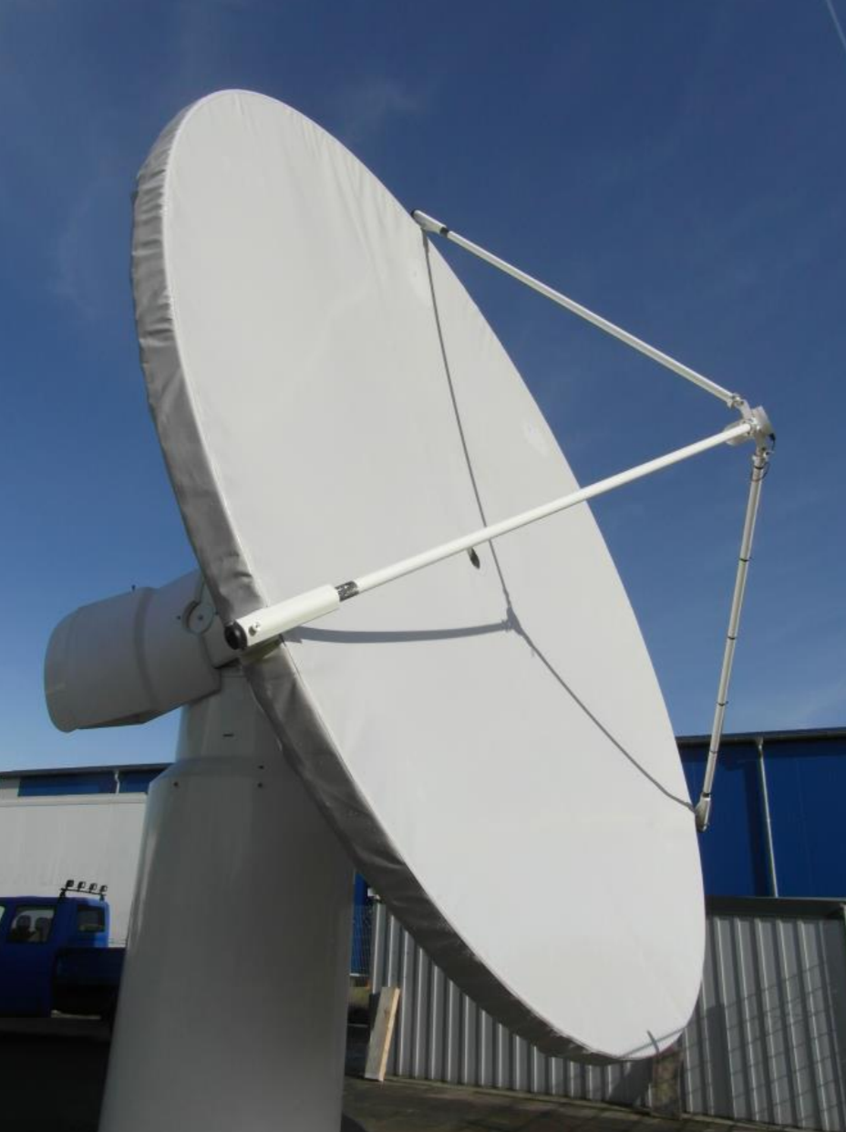 Solid surface main antenna reflector technology manufactured from a carbon fibre and Kevlar honeycomb sandwich improved signal gain, less weight and better aerodynamics.